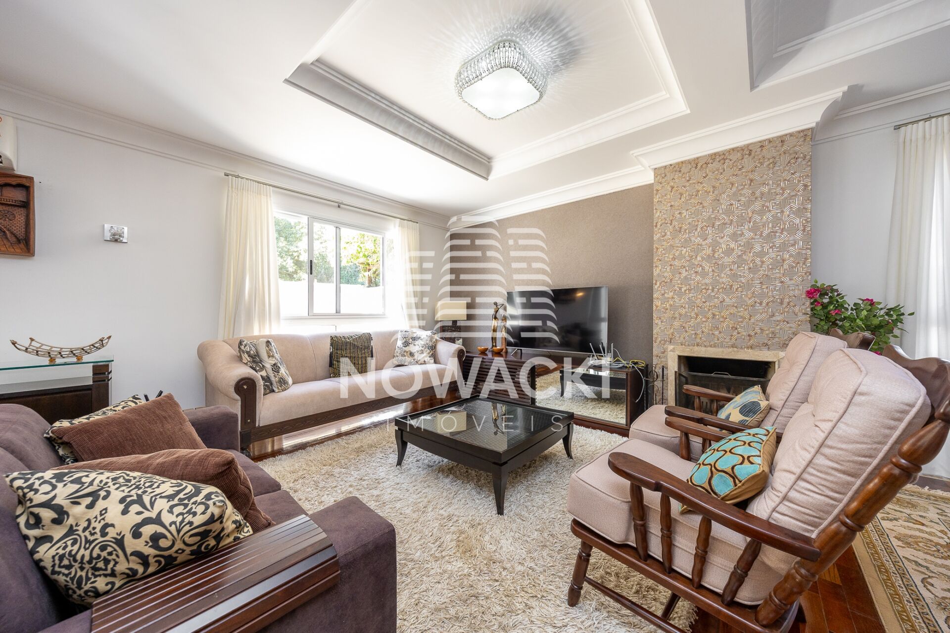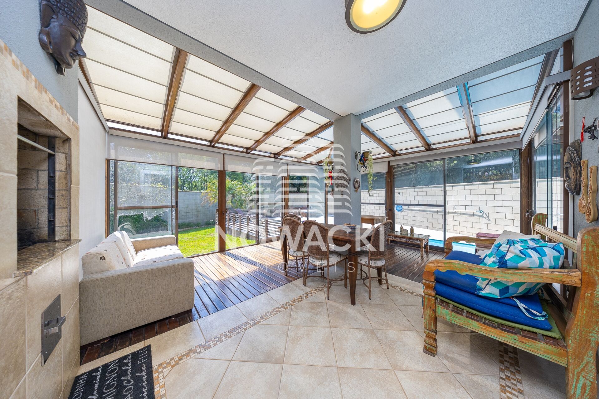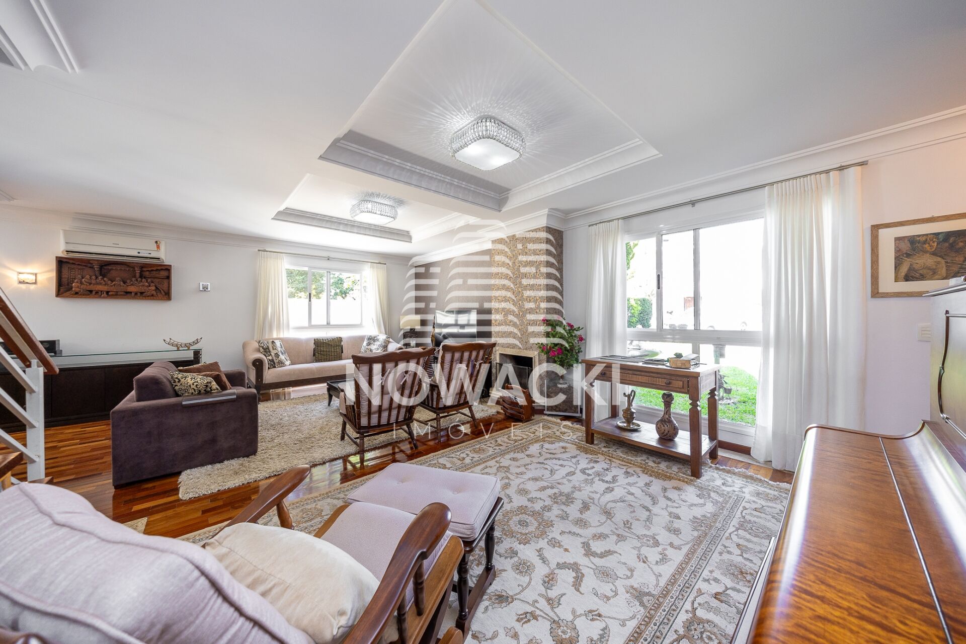 * SALA DE ESTAR CLIMATIZADA, COM PISO EM MADEIRA E LAREIRA À LENHA;