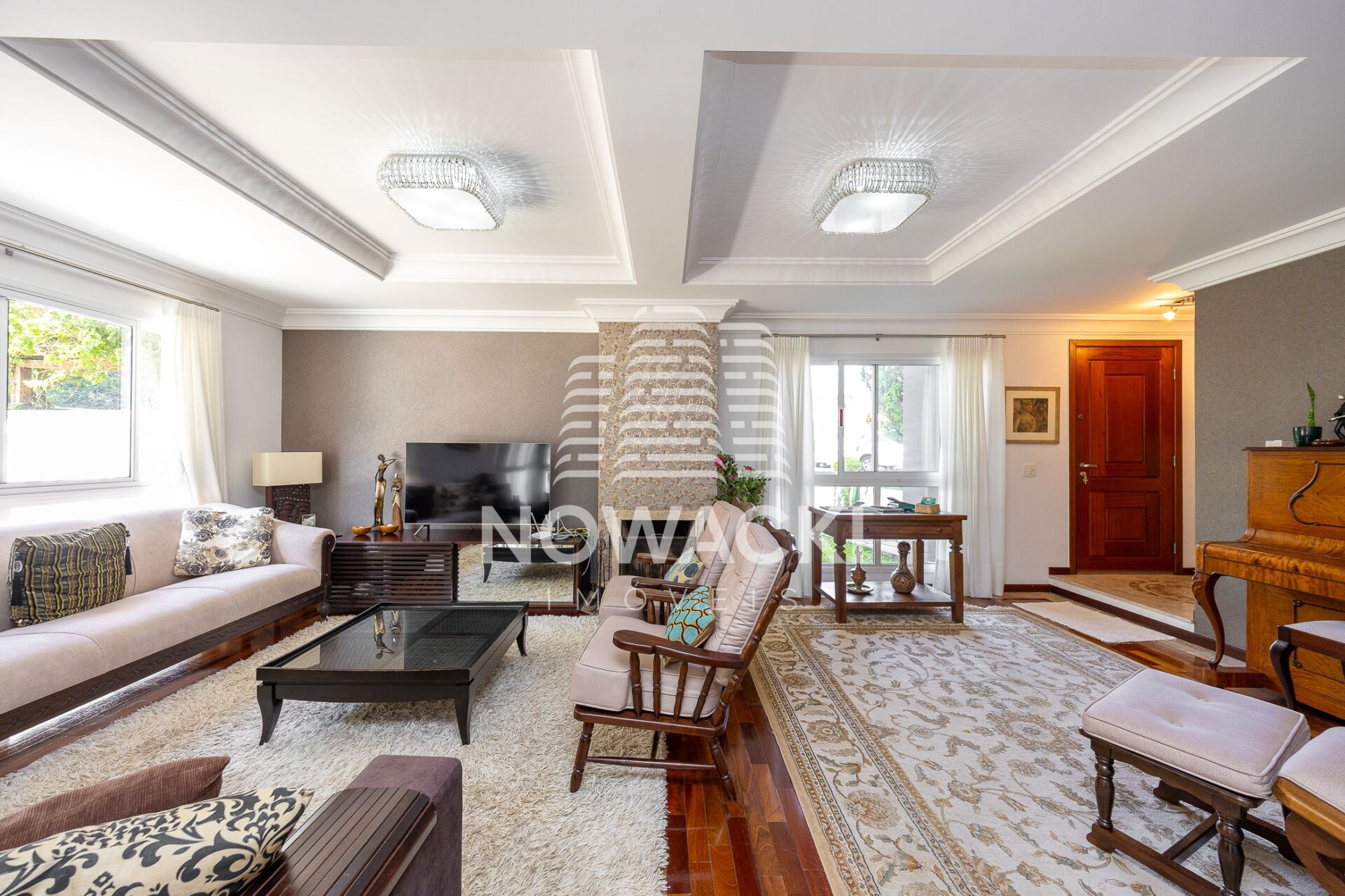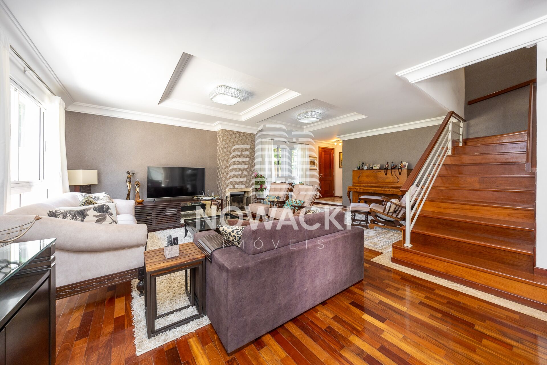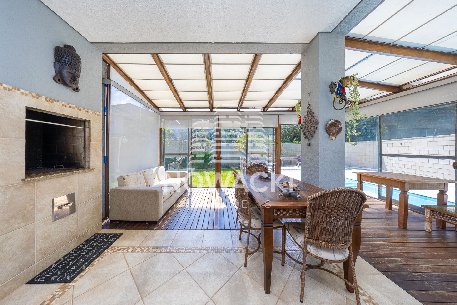 * SALA DE ESTAR CLIMATIZADA, COM PISO EM MADEIRA E LAREIRA À LENHA;