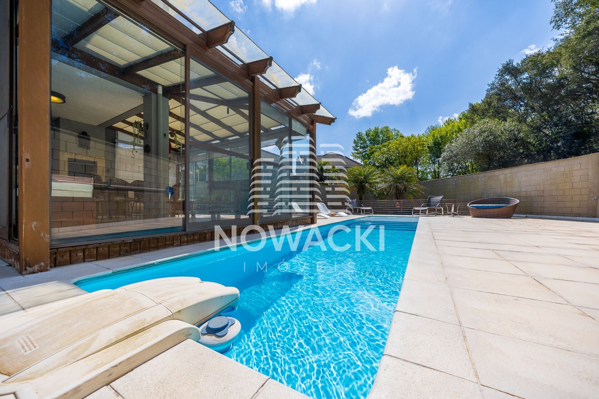 * LINDO E AMPLO QUINTAL COM ÁRVORES FRUTÍFERAS, HORTA E PISCINA COM SISTEMA DESJOYAUX;