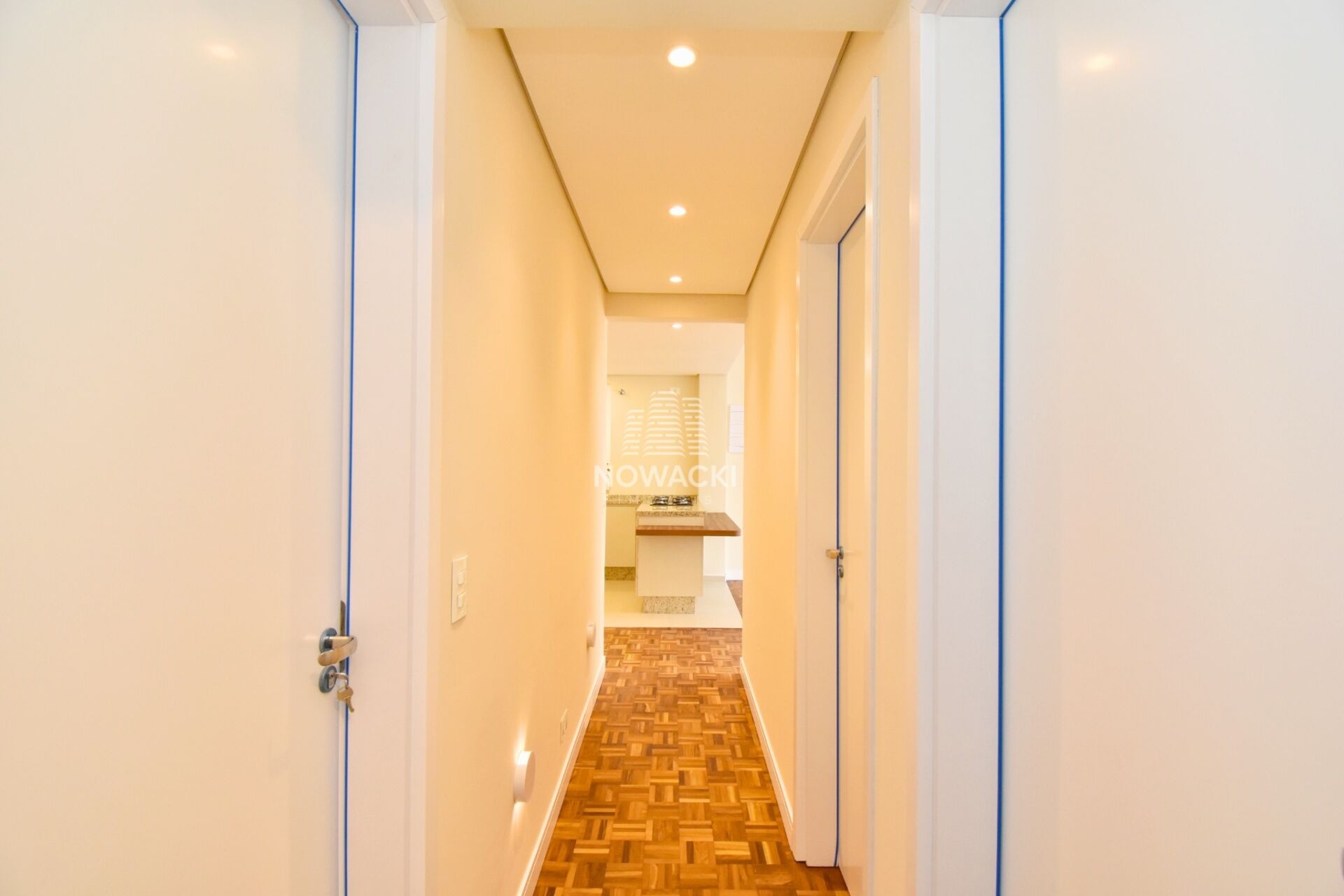 -COZINHA COM ARMÁRIOS PLANEJADOS INTEGRADA A LAVANDERIA, TAMBÉM COM ARMÁRIOS.